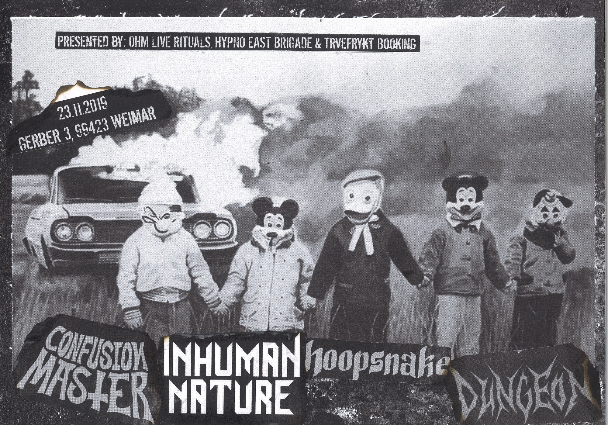 Trvefrykt Booking, OHM Live Rituals und HYPNO EAST BRIGADE arbeiten Hand in Hand und liefern euch an diesem Abend ein gemixtes Line Up aus punklastigem Speed Metal, moshigem Crossover, tonnenschwerem Doom und Electric Wizard-Worshipping Stoner.