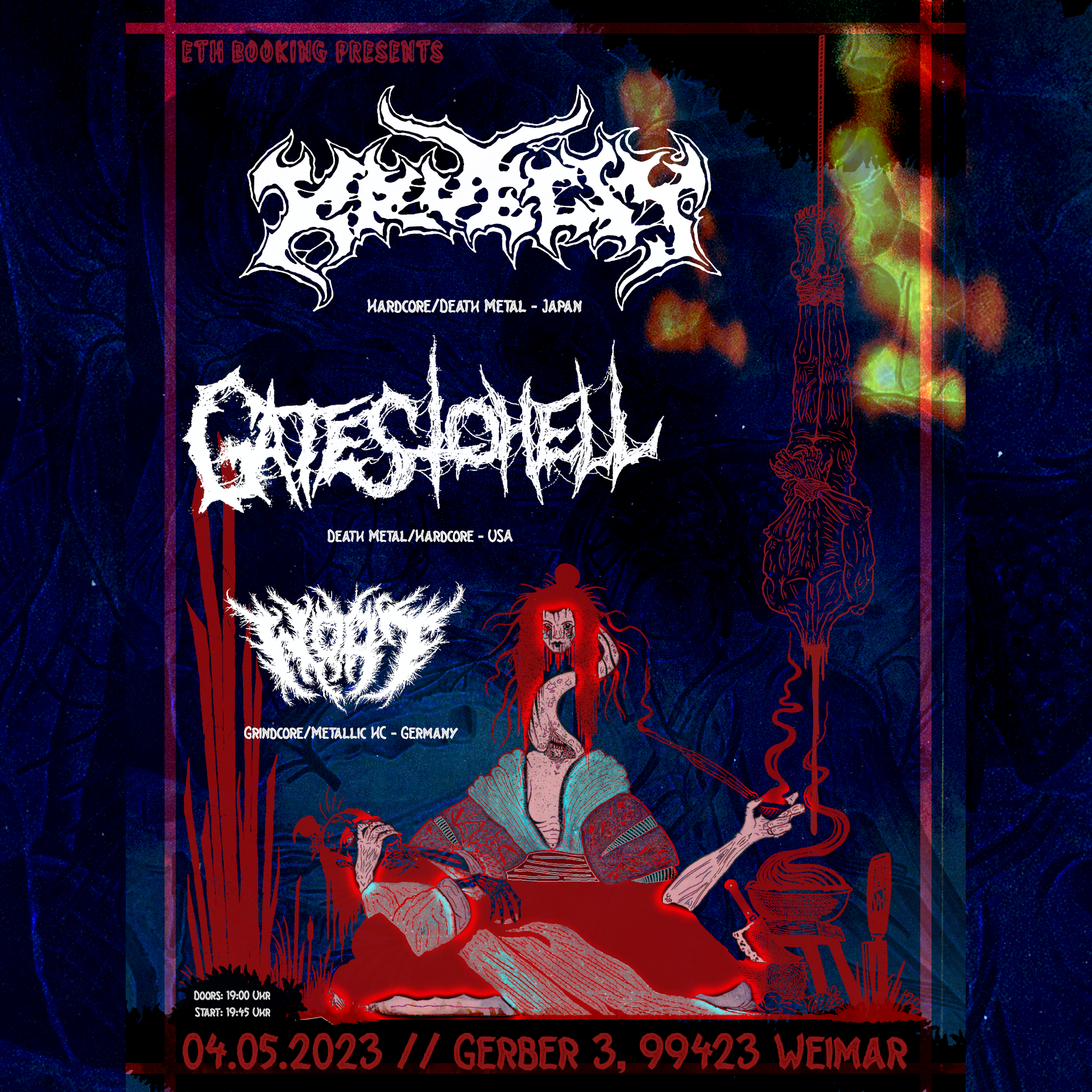 Voller Vorfreude können wir euch eine der beiden Deutschlandshows präsentieren, die es bei der EU-Tour zu 'Untopia' dem neuen Album der japanischen Death Doom/ Hardcore Walze KRUELTY, geben wird. Als Toursupport kommen die amerikanischen Death/HC Newcomer GATES TO HELL mit, die spätestens seit ihrem selbst betitelten Debütalbum im letzten Jahr, ein erstes großes Ausrufezeichen im modernen Mosh Metal hinterlassen konnten. Als dritte Band haben wir WOAT organisiert, die ebenfalls zum ersten Mal bei uns spielen werden.