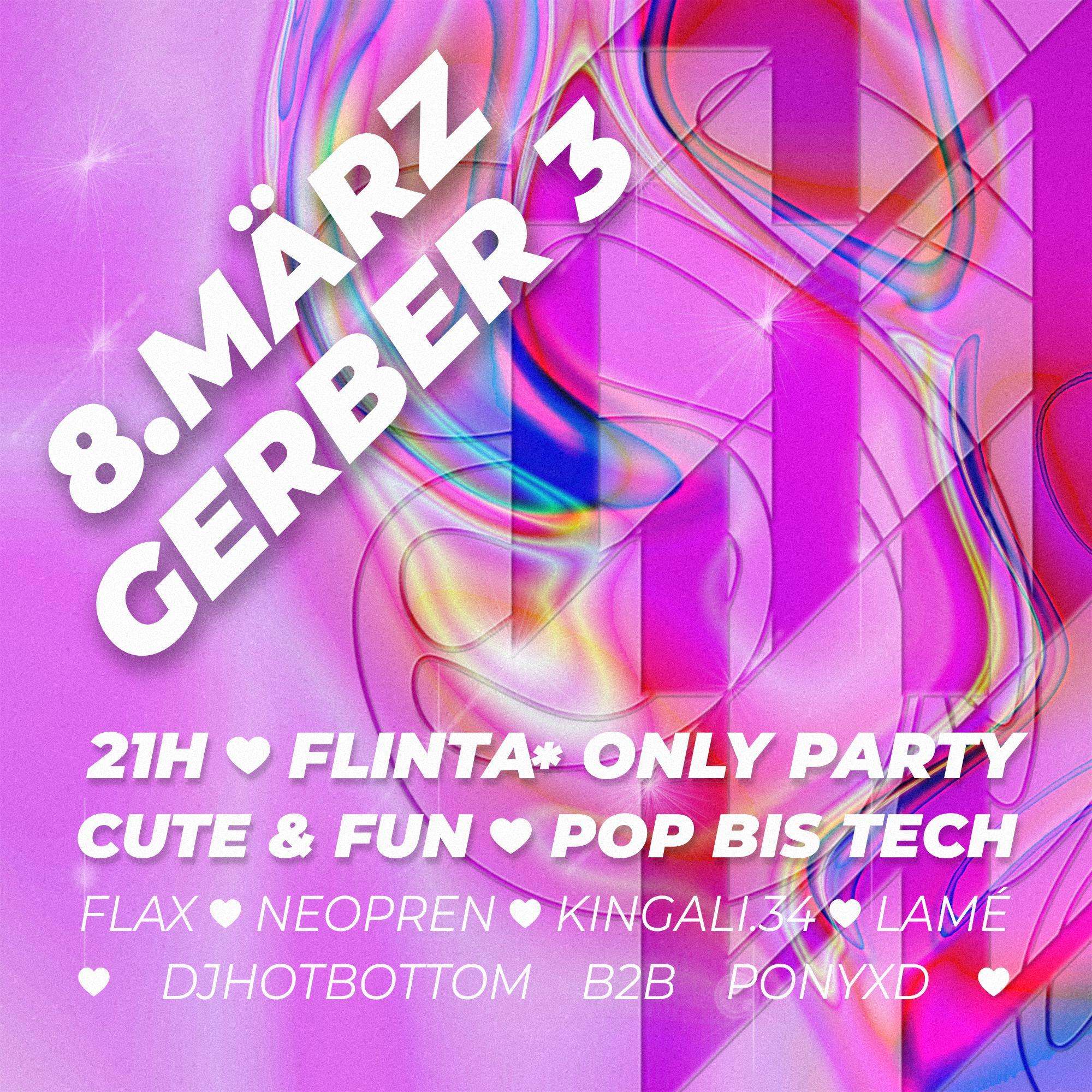 we warmly invite you to our FLINTA* ONLY party at Gerberstraße 3 on Friday, March 8, 2024!