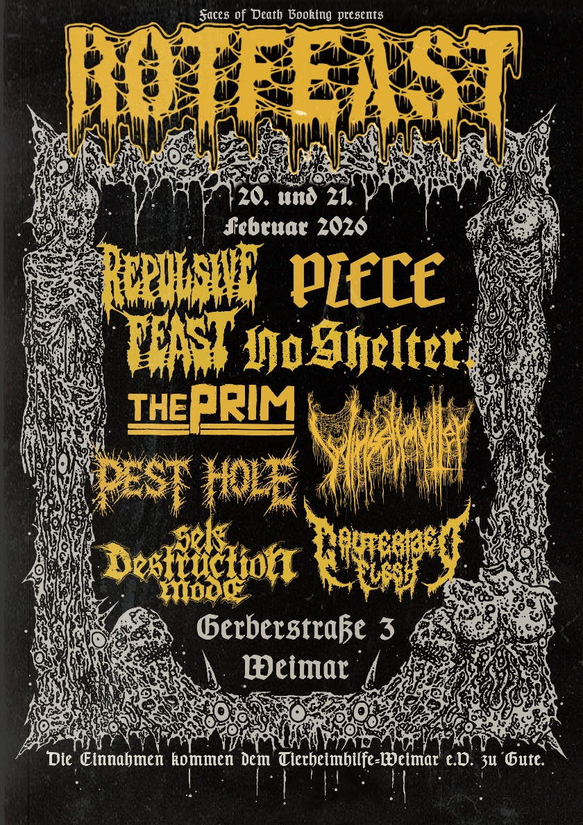 Die Einnahmen vom Einlass, abzüglich Spritgeld für die Bands, gehen an den Tierheimhilfe-Weimar e.V. zur Unterstützung örtlicher Tierheim. Alle Bands verzichten freiwillig auf irgendwelche Gagen. VIELEN DANK DAFÜR!!