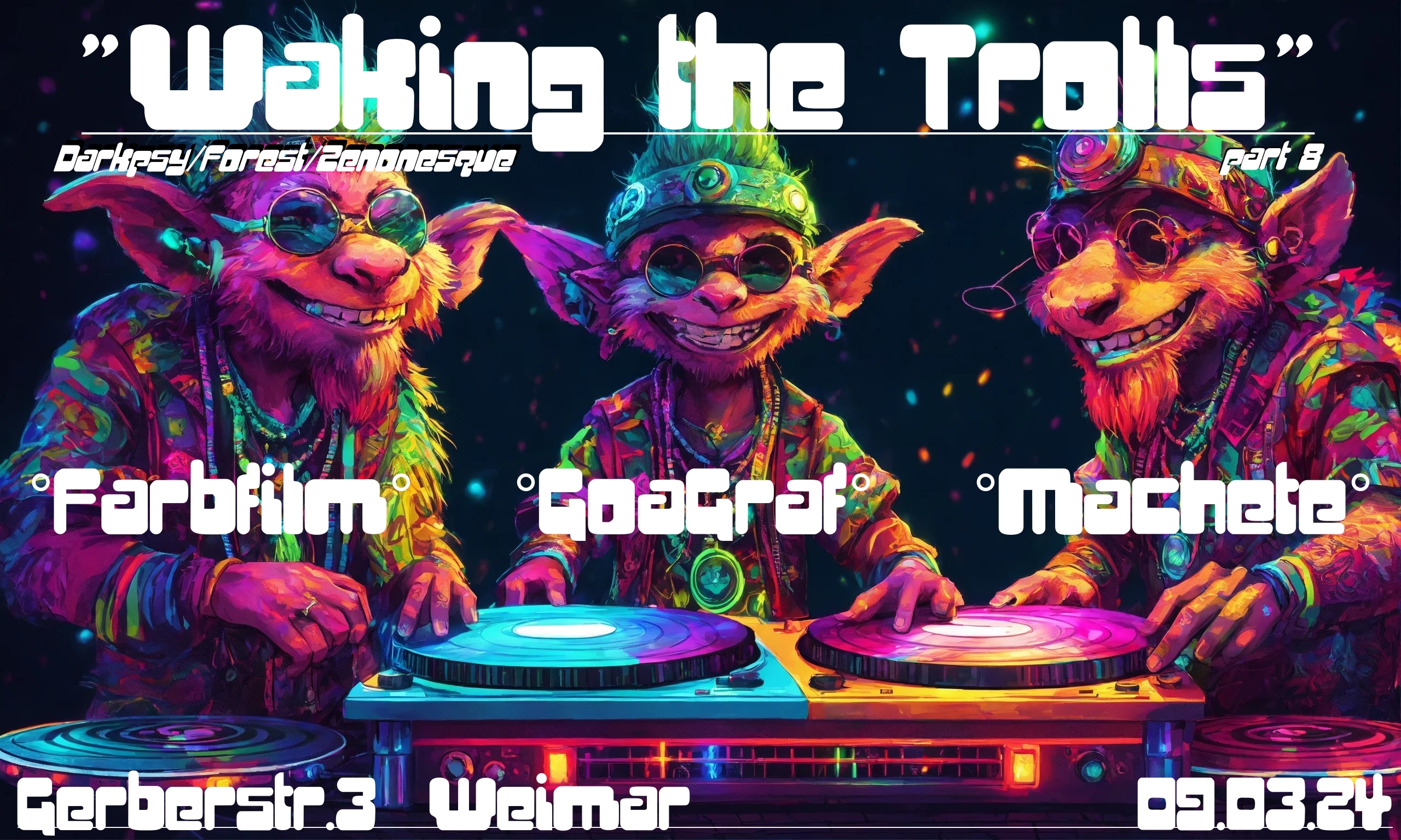 Los geht's um 22 Uhr. #No ISM #No PHOBIA #No HITECH. Rave hard, Be nice! https://www.goabase.net/de/party/waking-the-trolls-part-8/112392